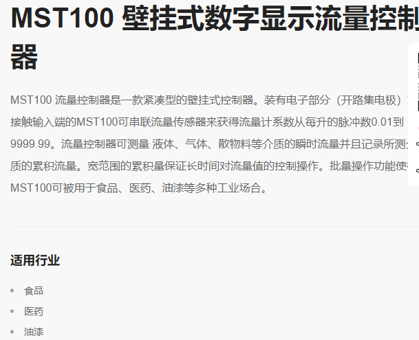 NEXON 壁挂式数字显示流量控制器MST100系列