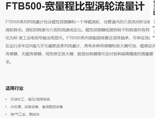 NEXON 宽量程比型涡轮流量计FTB500系列